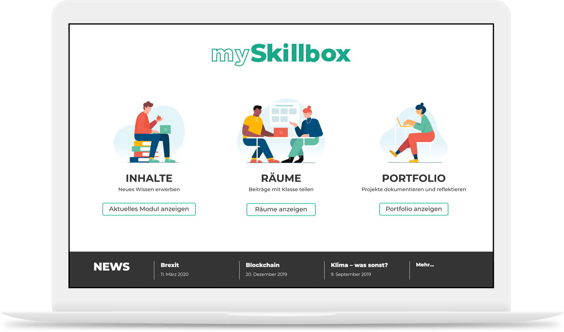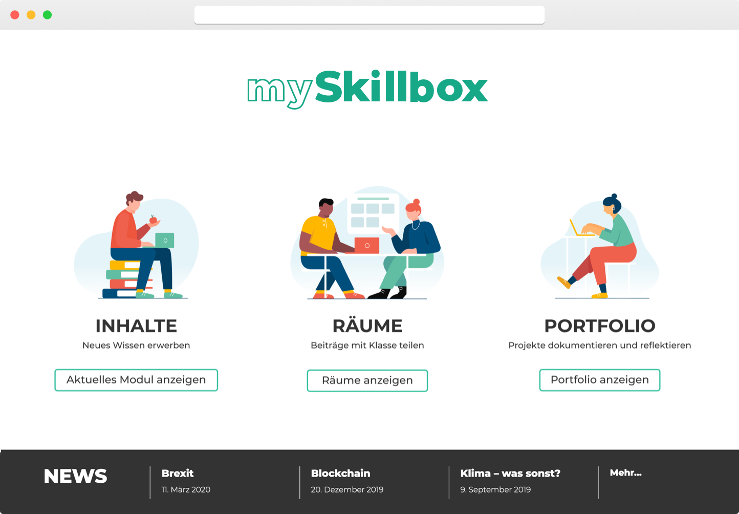 mySkillbox besteht aus drei Arbeitsbereichen: